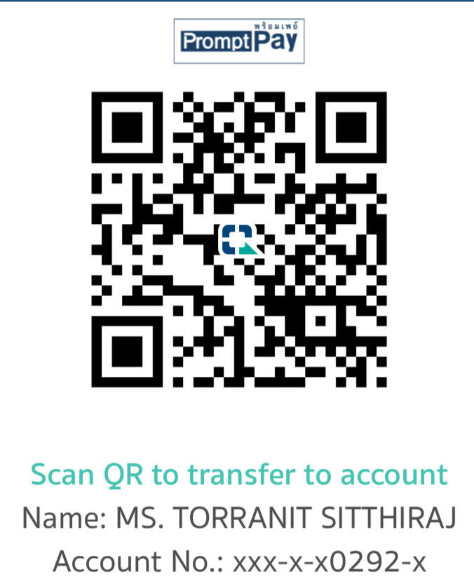 Account Name : Torranit SitthirajAccount No. : 188-3-70292-8SWIFT code : KASITHBKXXXBank name : Kasikorn BankBank address : 400/22, PHAHON YOTHIN BUILDING, PHAHON YOTHIN ROAD, SAM SEN NAI, PHAYA THAICity : BANGKOKCountry : ThailandPostcode : 10400